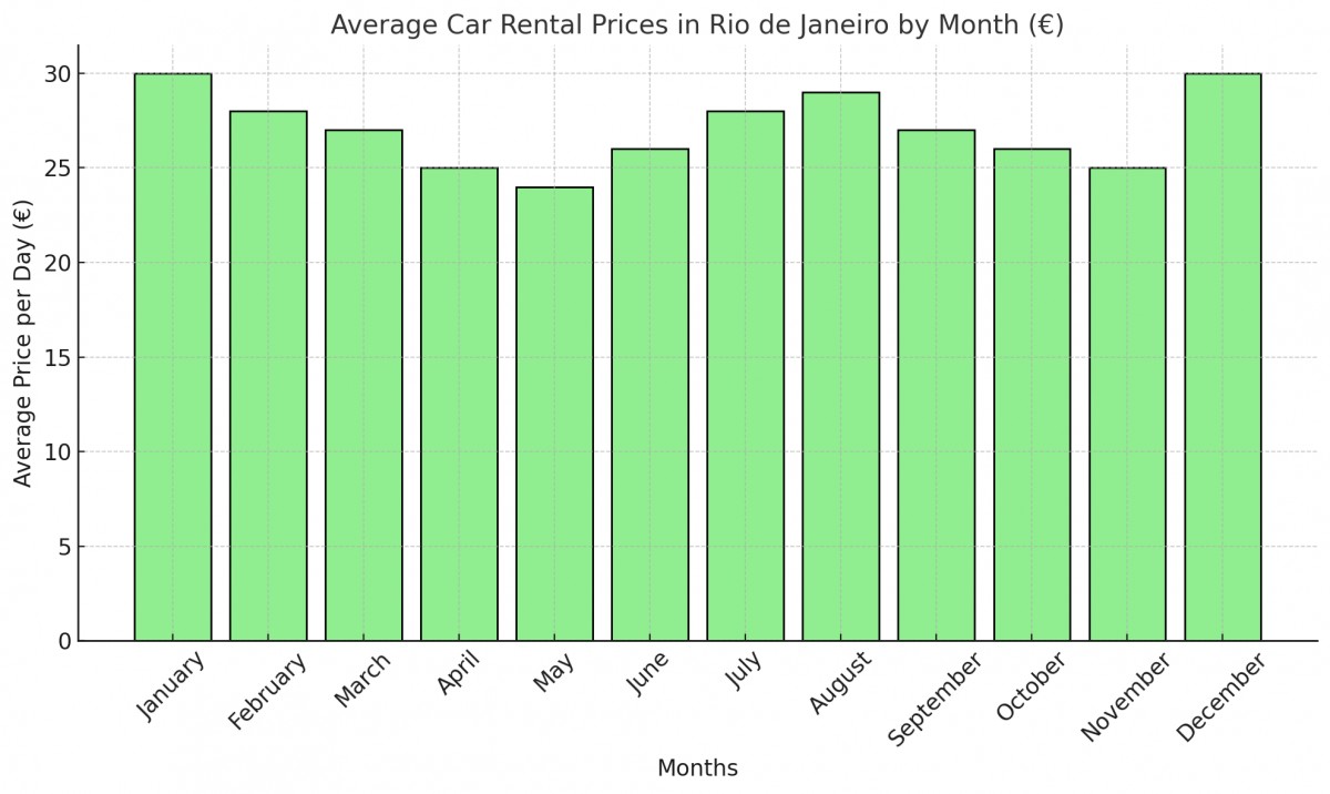 Autorentimise hinnad Rio de Janeiros võivad olenevalt aastaajast oluliselt erineda, kusjuures tipp-turismihooajad toovad kaasa kõrgemad hinnad. Siin on üldine ülevaade keskmistest autorentimise hindadest kuu kaupa: