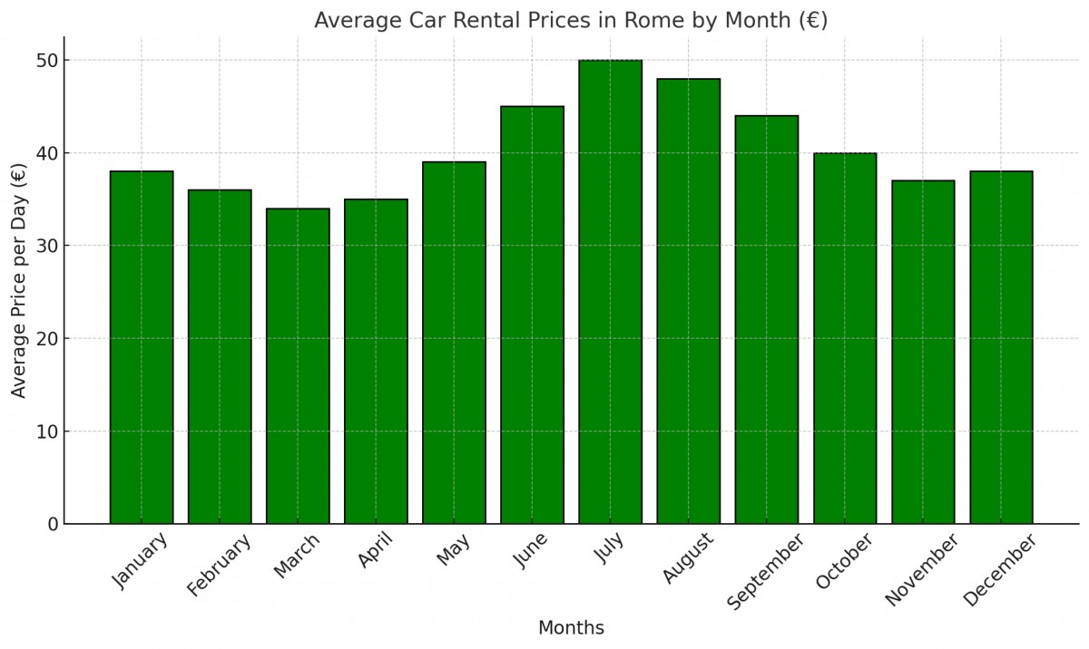Lato i ważne święta to szczyt sezonu turystycznego w Rzymie, co skutkuje najwyższymi cenami wynajmu samochodów. Dzienne stawki za samochody ekonomiczne mogą wzrosnąć do 50–100 euro lub więcej, szczególnie w lipcu i sierpniu.